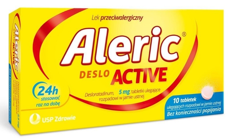 Aleric Deslo Active to lek przeciwalergiczny w postaci tabletek ulegających rozpadowi w jamie ustnej i niewymagający popijania. Aleric Deslo Active nie wywołuje senności i jednocześnie przez cały dzień zmniejsza symptomy alergicznego zapalenia błony śluzowej nosa, takie jak: katar sienny, kichanie lub łzawienie oczu. Lek łagodzi również skórne objawy uczulenia, czyli świąd oraz pokrzywkę. Produkt leczniczy zawiera desloratadynę i można go stosować u osób dorosłych a także u młodzieży powyżej 12 lat.