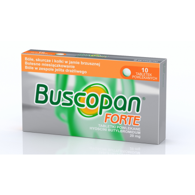Buscopan Forte is a drug that has spasmolytic properties. Thanks to relaxation of the smooth muscles of the digestive tract, bile ducts and urinary tract, it relieves abdominal pain.